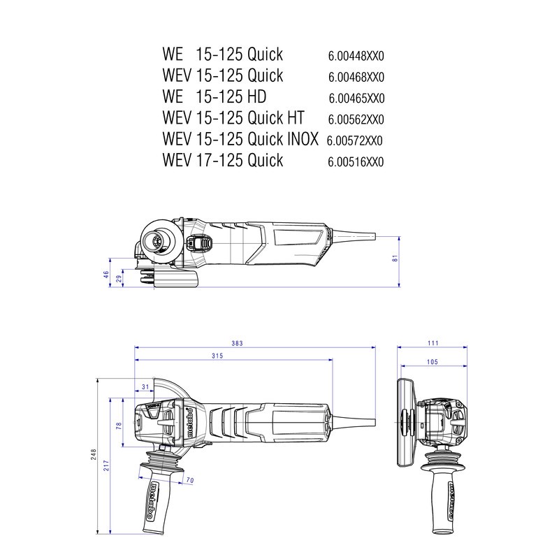 Metabo WE 15-125 QUICK on 1550W:n kulmahiomakone, jonka laikan halkaisija on 125 mm.