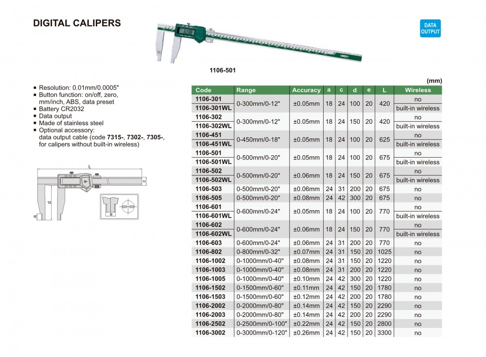 Koneistus » Mittalaitteet » Työntömitat » Insize 500mm digi työntömitta Insize 500mm digi työntömitta 157,77 € Tuotekoodi 1106-501 Määrä Lisää tilaukseen Saatavuus Tilaustuote Ei vedenpitävä• Resoluutio: 0.01 mm / 0.0005"• Painikkeet: on / off, nolla, mm / tuuma• Automaattinen virrankatkaisu• Paristo: CR2032 Lisätiedot › Ei vedenpitävä• Resoluutio: 0.01 mm / 0.0005"• Painikkeet: on / off, nolla, mm / tuuma• Automaattinen virrankatkaisu• Paristo: CR2032 Näytä lisää tuotteitaTyöntömitat tuoteryhmästä