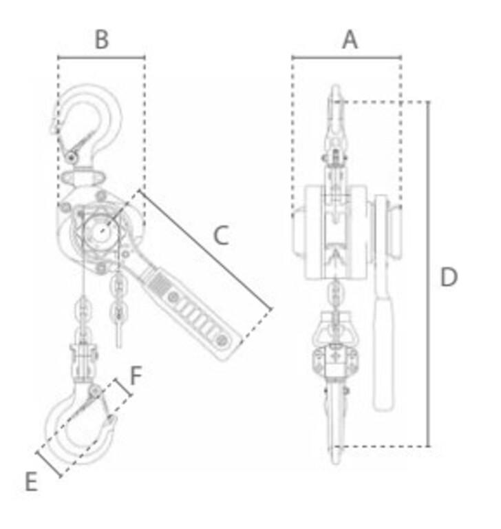 Muut tuotteet » Nostovälineet » 0.5T/3m ketjuviputalja ALU 0.5T/3m ketjuviputalja ALU 157,60 € Tuotekoodi 15201000036308 Määrä Lisää tilaukseen Saatavuus Varastossa (2 kpl) Lisätiedot › Vipunostin alumiinirungollaTyökuorman raja: 500,00 kgNostokorkeus: 3 mKetjujen lukumäärä: 1Ketjulenkin halkaisija: 5 mmKettingin jako: 15,00 mmNosto vivun kierrosta kohden: 20,00 mmA: 100 mmB: 93 mmC: 160 mmD: 265 mmE: 34 mmF: 22 mm Näytä lisää tuotteitaNostovälineet tuoteryhmästä