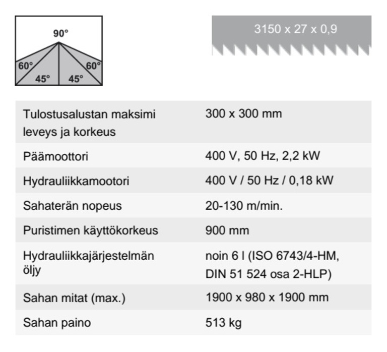 • Tulostusalustan maksimi leveys ja korkeus: 300 x 300 mm