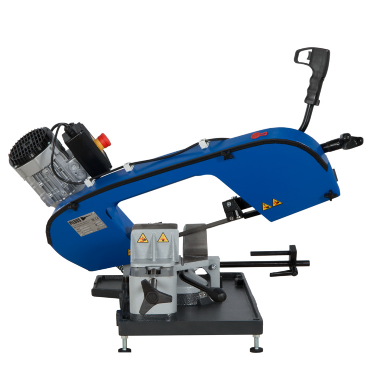 Pieni vannesaha yleiskäyttöön konepajoihin, tehtaisiin ja kenttäasennuksiin. Tukeva runko on valmistettu harmaasta valuraudasta. Manuaalisyöttö jousen painetta vastaan.