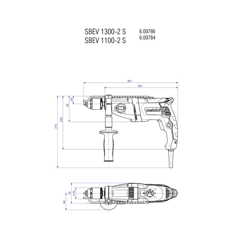 Metabo SBEV 1300-2 S on 1300 W:n iskuporakone, maks. vääntömomentti 44/16 Nm.