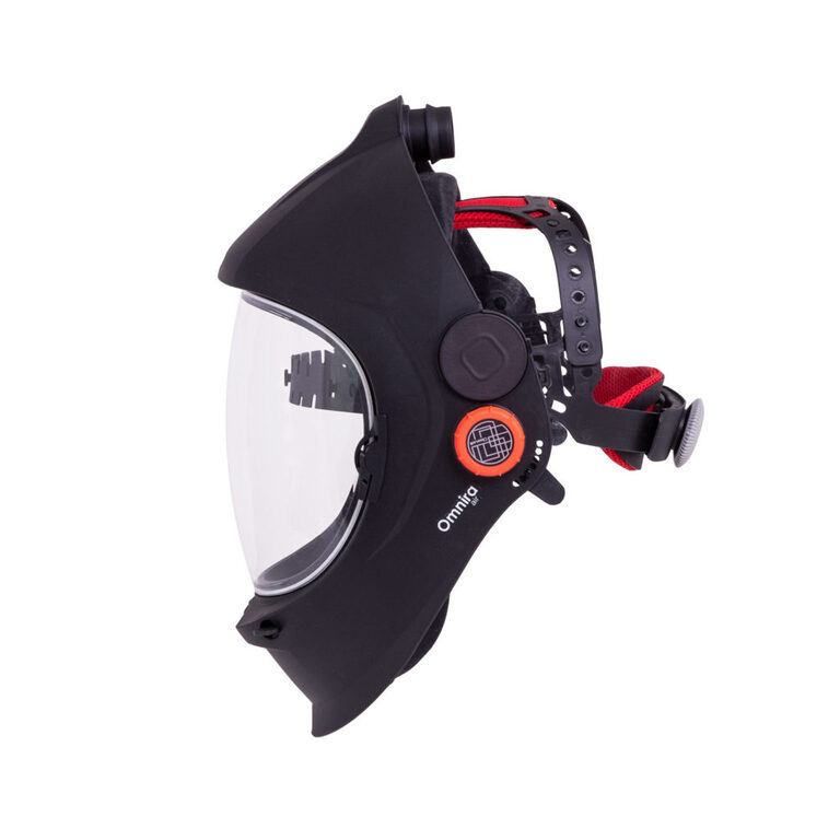 Ammattikäyttäjille kehitetty kasvonsuojus, joka suojaa käyttäjän kasvoja ja silmiä nopeaenergisiltä hiukkasilta.